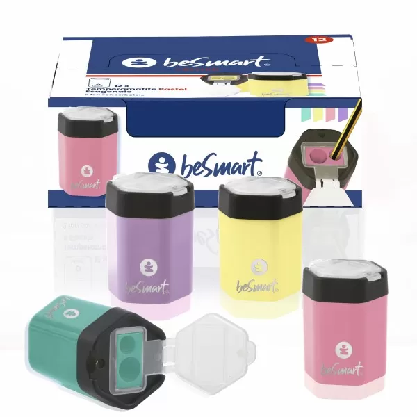 TEMPERINO EXAGON 2FORI IN BOX DA 12PZ, 4 COLORI PASTEL BE SMART Questo prodotto è venduto in confezione composta da n° 12 pezzi
