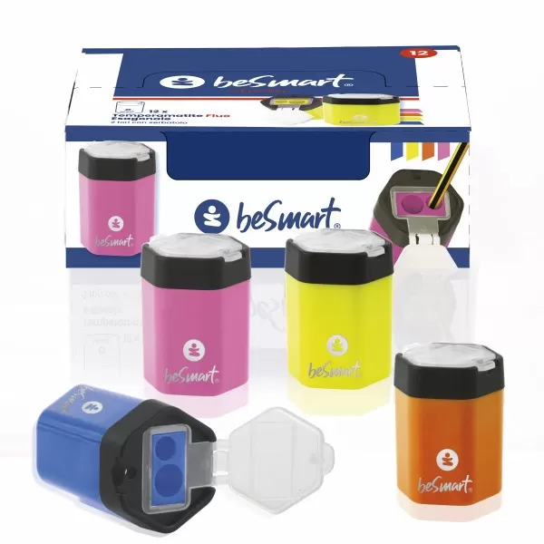 TEMPERINO EXAGON 2FORI IN BOX 4 COLORI STD BE SMART Questo prodotto è venduto in confezione composta da n° 12 pezzi